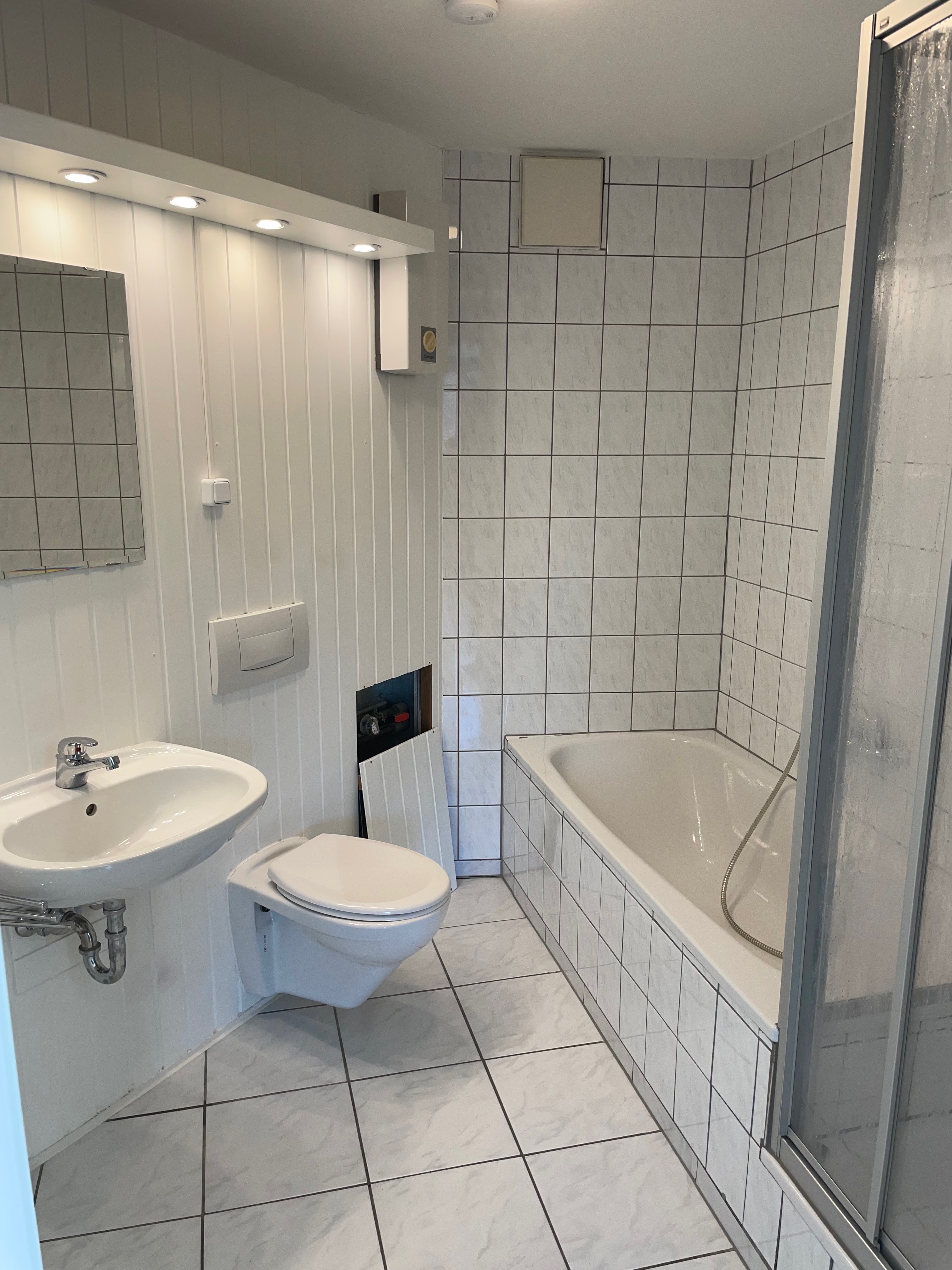 - Ausstattung des Bades Badewanne, Dusche